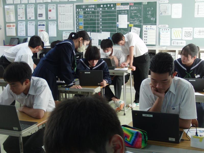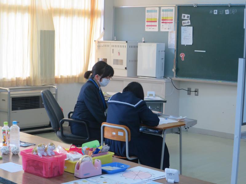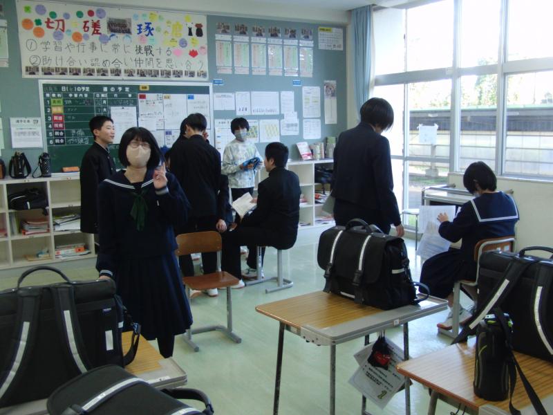 文化祭前日ですが、計画的に授業も進めています。3年生(理科)は学力テストが近いこともあり、授業で学んだこと(力の分解)を終了間際に確認していました。教科担任が丸をつけすぐフィードバックしています。1・2年生もアウトプットタイム(授業終わり10分間の振り返り時間)で学習事項の定着を確認しています。