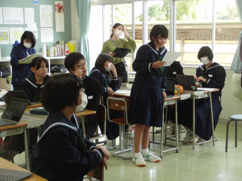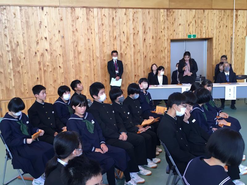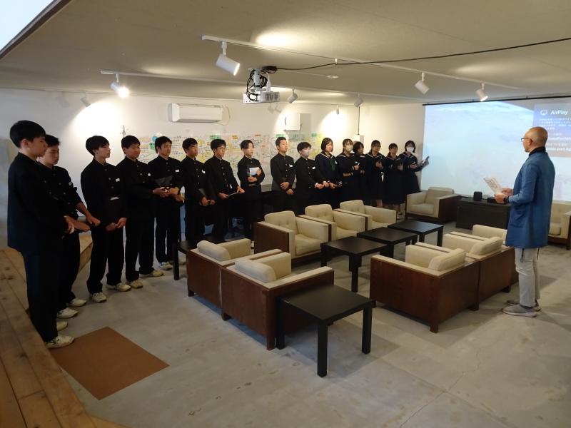 11月1日(水)の午後から、3年生が「NOTO CROSSPORT」の見学と、役場の研修室で「能登町のファンをつくる」学習会を行いました。NOTO CROSSPORTでは、施設についての説明と能登町が移住定住促進のために行っている取り組みを紹介していただきました。学習会では、能登町のファンを増やすことで、能登町に関わってくれる人が増え、未来の能登町を少しでも明るくできないかというお話を伺いました。生徒たちは、能登町の未来について、前向きな考えを出していました。