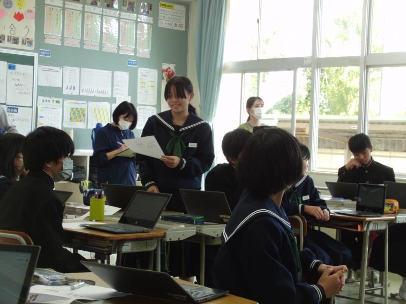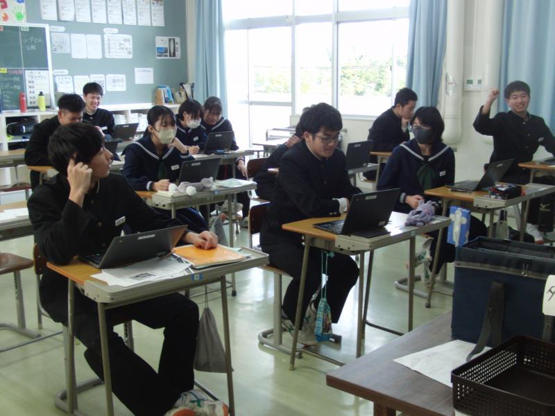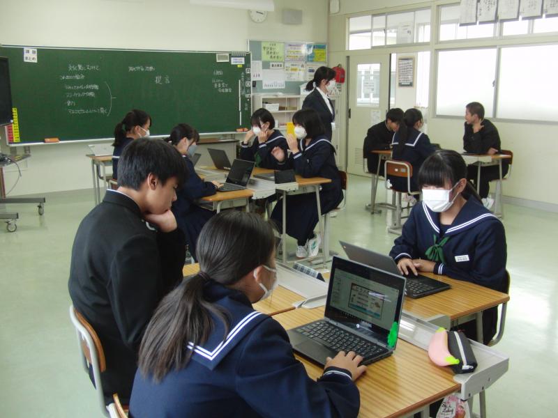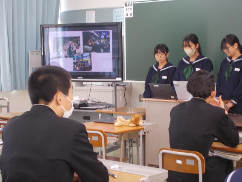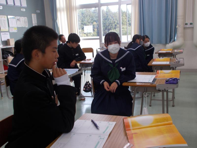 3年生は「世界の諸民族の音楽」で日本と外国の管楽器、弦楽器、打楽器の特徴や音色について意見交換をしました。