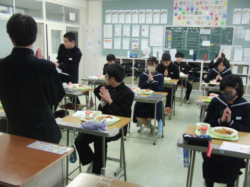 3年教室では合掌後、さっそく余分のカツ争奪じゃんけんが始まりました。