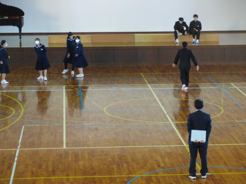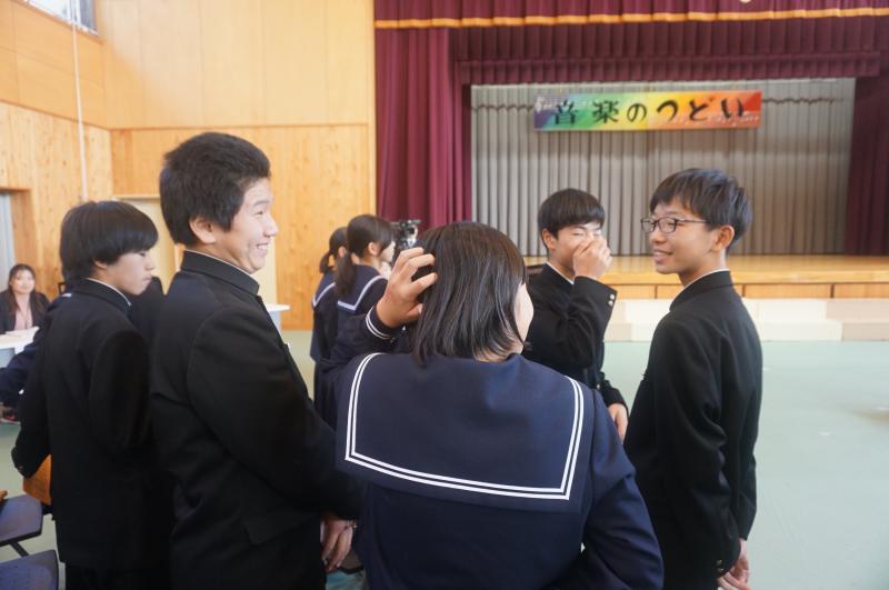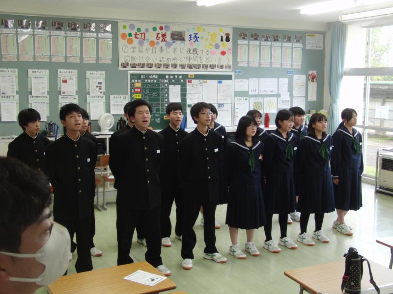 松波中学校には、音楽専科の先生がいません。そこで、毎週火曜日に小木中学校から友延先生に来ていただき、音楽の授業を実施しています。今日は、その火曜日です。