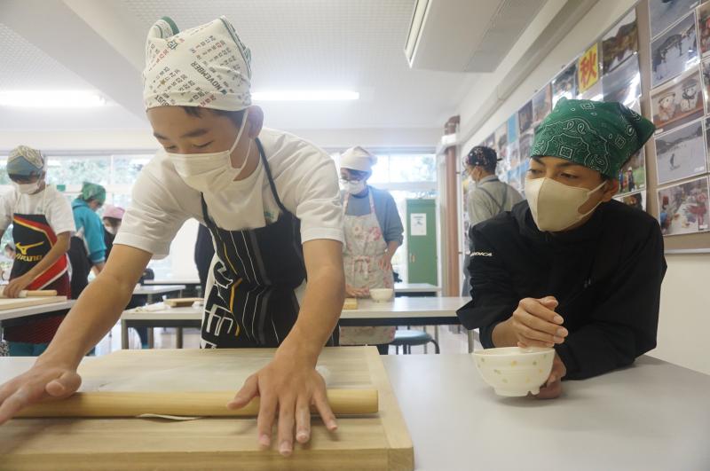能登少年自然の家で、1学年PTA学年行事として、「そば打ち体験」を行いました。親子で協力して、そばを打ち、おいしくいただきました。参加いただいた保護者の皆様、ありがとうございました。