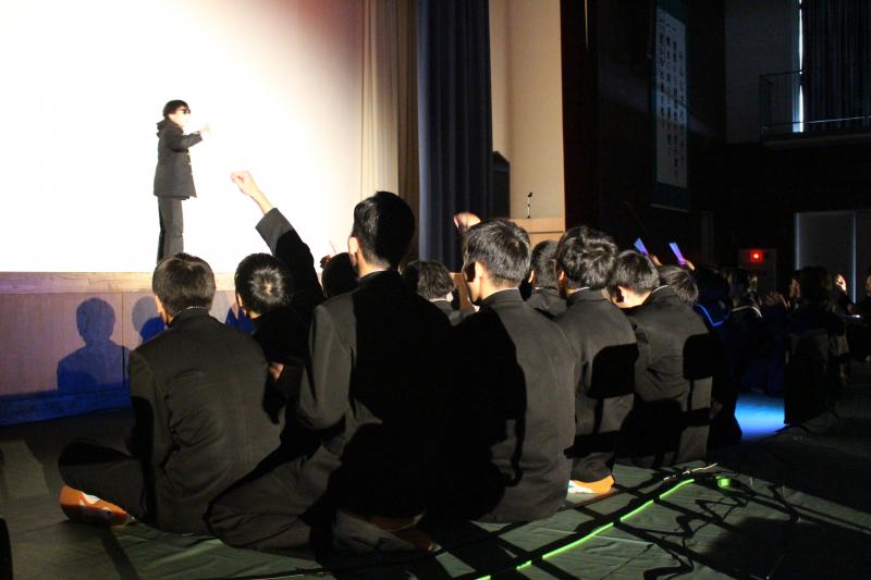 11月11日(土)文化祭に向けて、本日よりそれぞれの学年が自分たちで取組を決める学年裁量の時間が始まりました。名前の通り、活動の内容が学年で違います。今日は、最初の一時間なのでガイダンスにあてているようでした。そんな中、1年生大きな合唱の歌声が、学校に響きました。