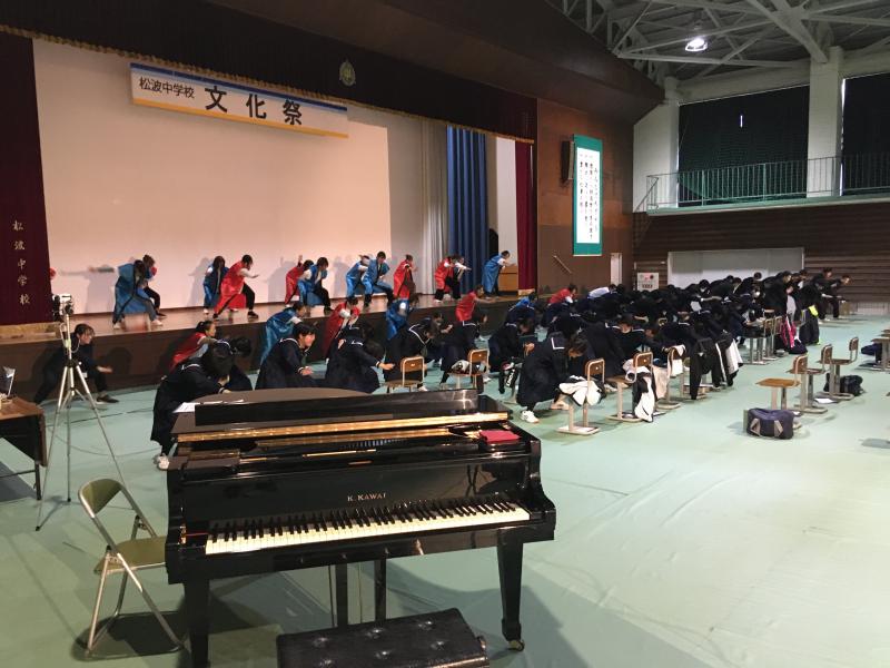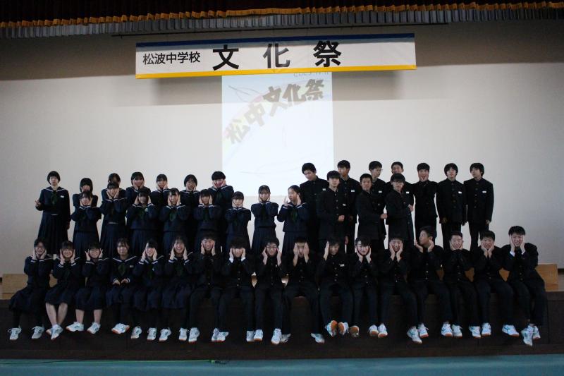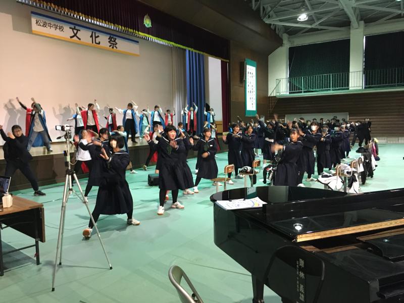 11月11日(土)午後、本校体育館で松波中文化祭を開催しました。70を超えるご参加を頂き誠にありがとうございました。特に保護者の皆様におかれましては、有志発表やドーナツ販売などのご協力ありがとうございます。生徒たちもおこぼれのドーナツにハードな日程の疲れも忘れたようでした。