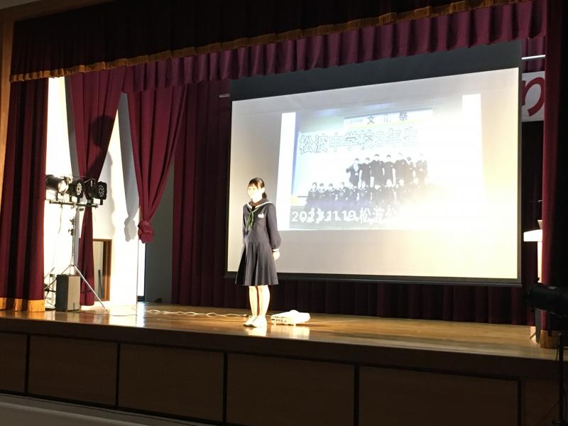 19日(日)、3年生が松波公民館まつりで学習発表をしました。