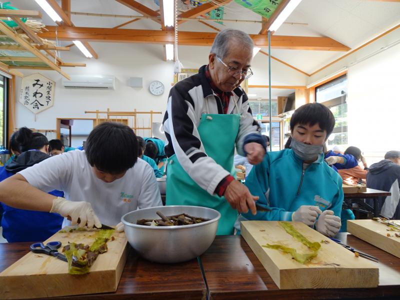 町内の3年生は、みわ会さんのお世話で久田和紙の卒業証書づくりをしています。今日は、松中3年生が小間生公民館でわしの原材料となるこうぞの皮むきに挑戦しました。きょうんぼ作業が卒業証書の形になるという実感はまだないようですが、卒業までののこり4カ月に思いをはせる時間になったようです。