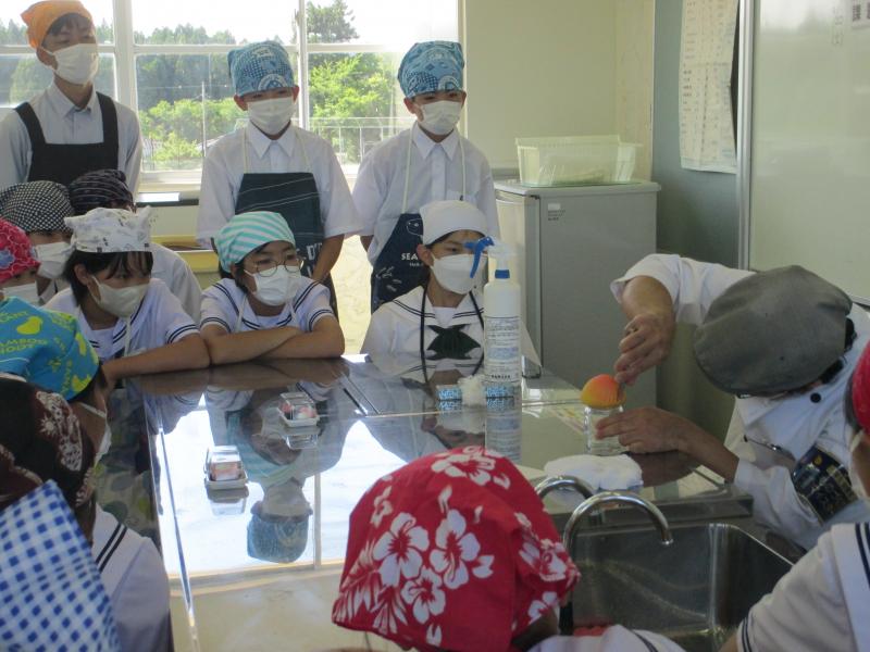 給食時間には3年生が「のとかけ」の特徴やふりかけづくりの様子などについて、1・2年生の教室にはなしに来てくれました。