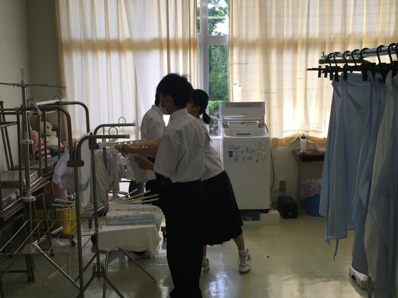 生徒会給食環境委員会は、週末にエプロン・頭巾洗濯干し…月曜朝には洗濯物を取り込んで各教室へ配布します。お昼の歯磨きソングは、各委員会が持ち回りで放送していますが、一日たりとも流れなかったことはありません。