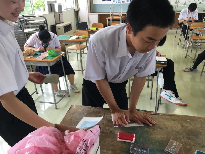 美術の授業の様子です。現在1年生は鉛筆による描画、2年生は1点透視図、3年生はハンコアートに取り組んでいます。今週は、2年生の作品が校内に展示されました。仕上がった作品は、この後次々と校舎を華やかにしてくれることでしょう。