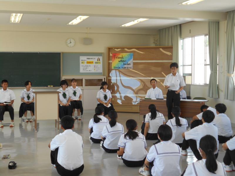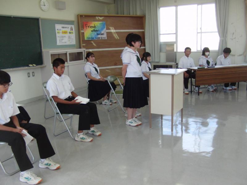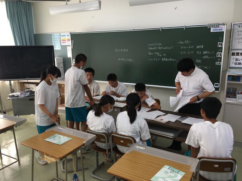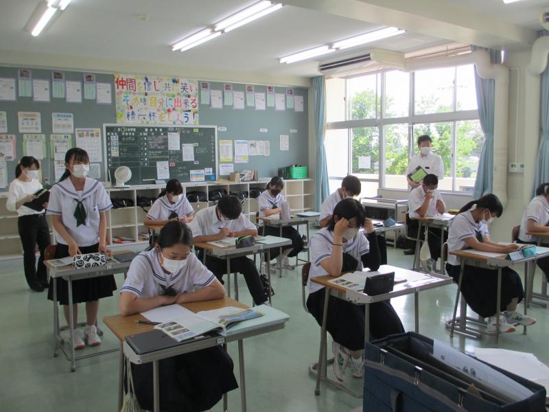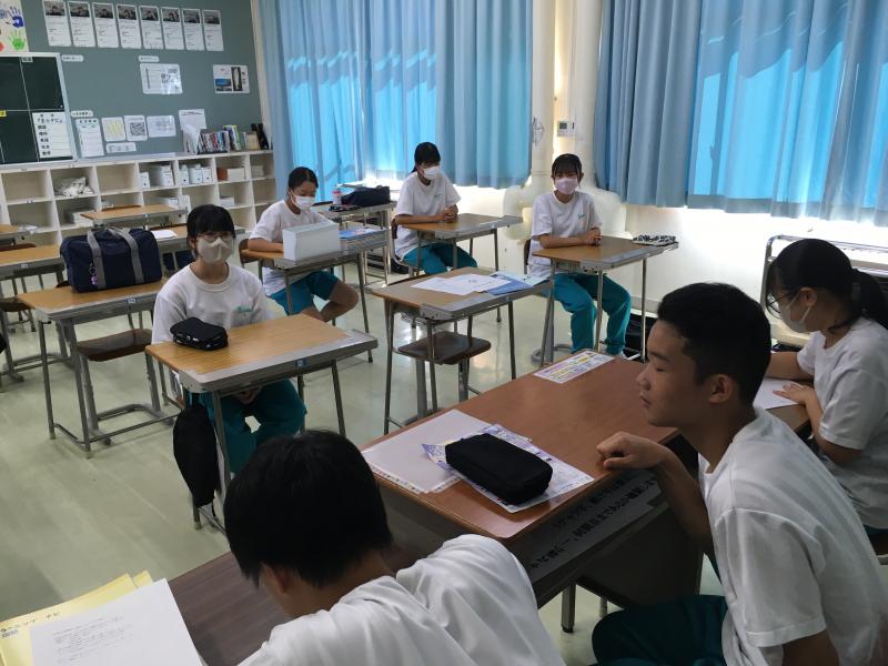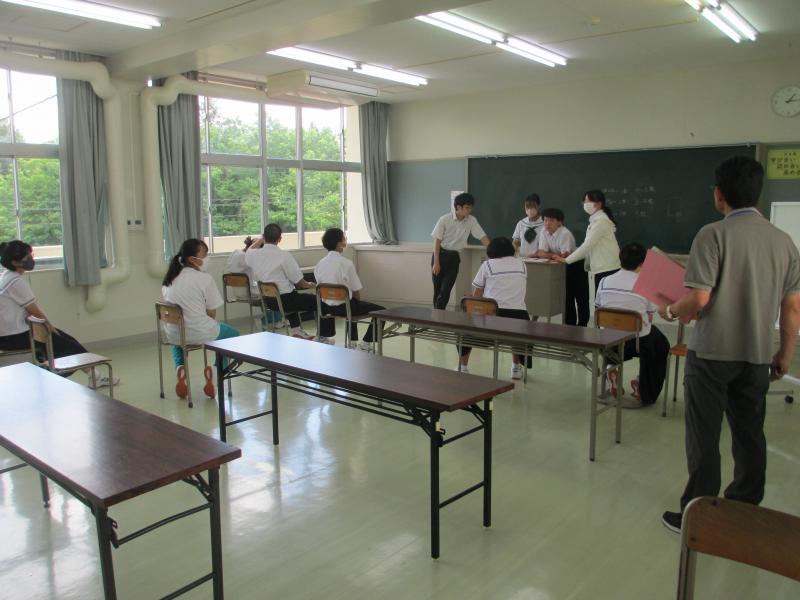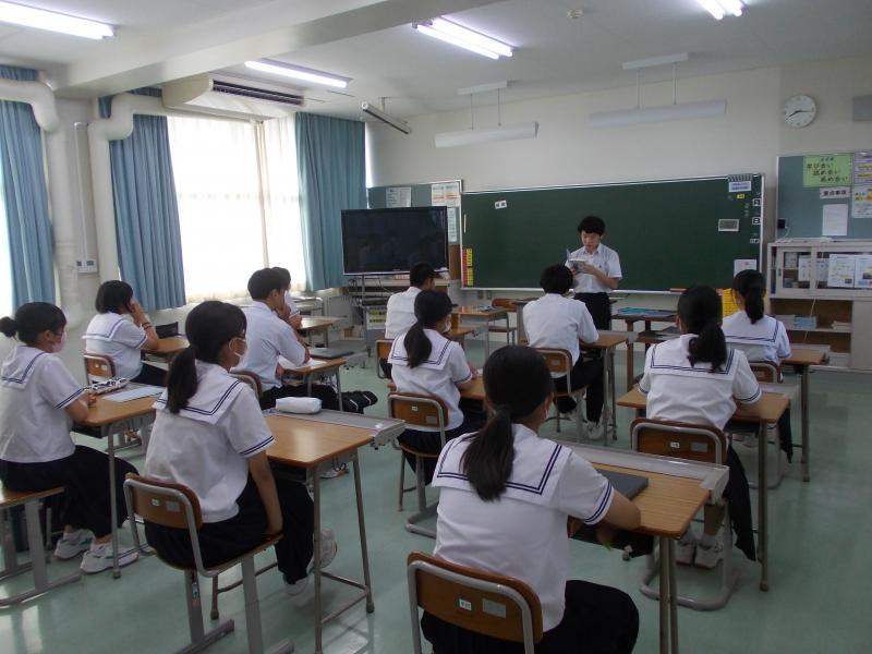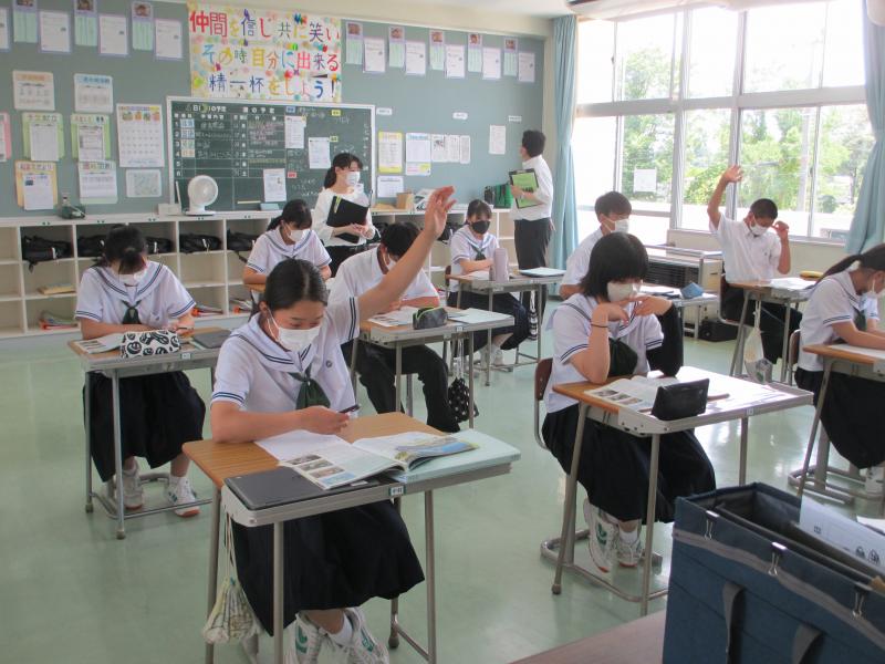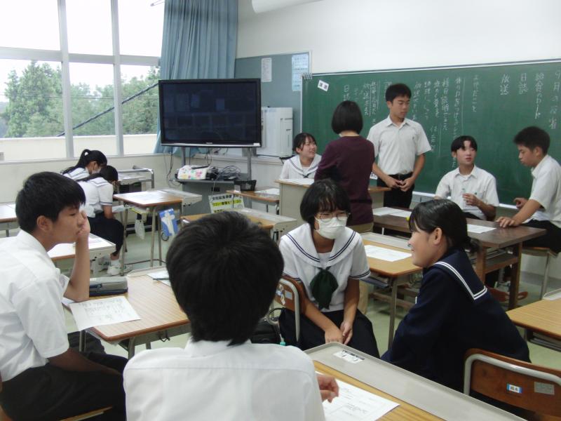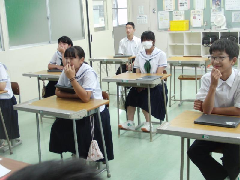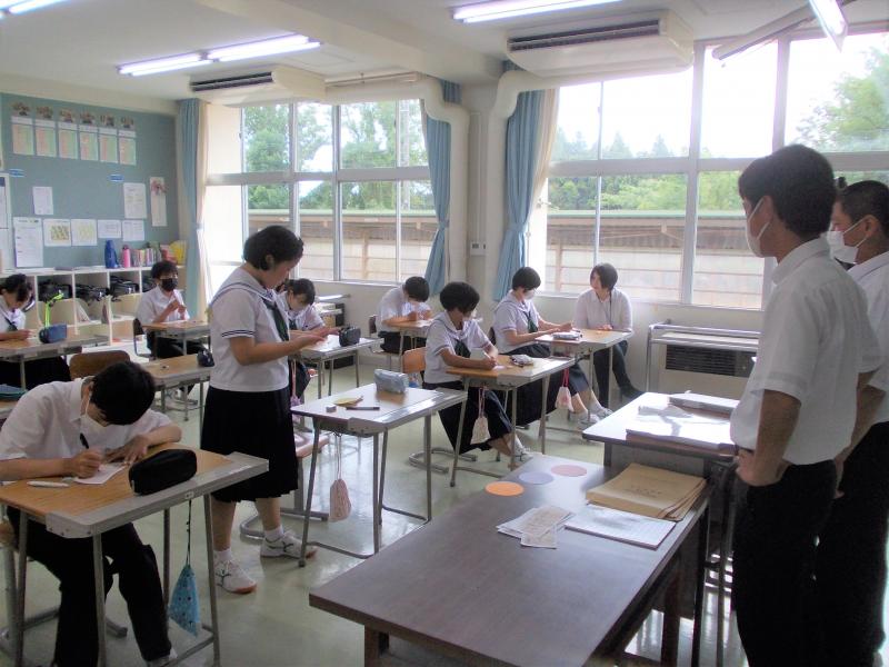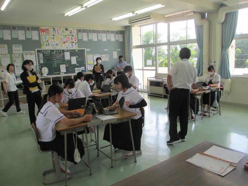 本日は、指導主事訪問がありました。「公の場で堂々と自分の考えを述べる」生徒を育てるために、お互いに考えを引き出し議論する。再考しまとめを書く・話す授業づくりに取り組んでいます。