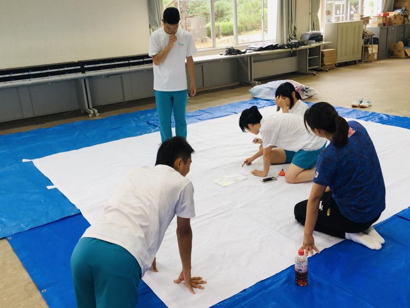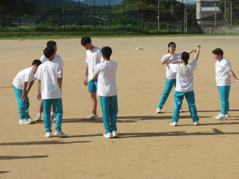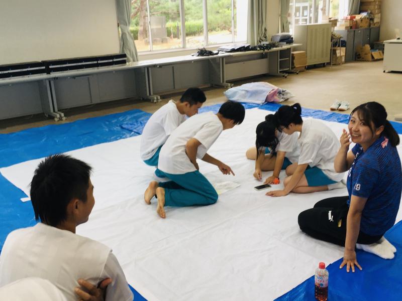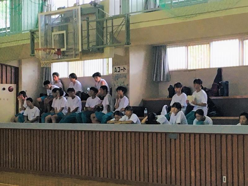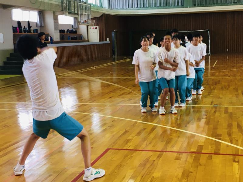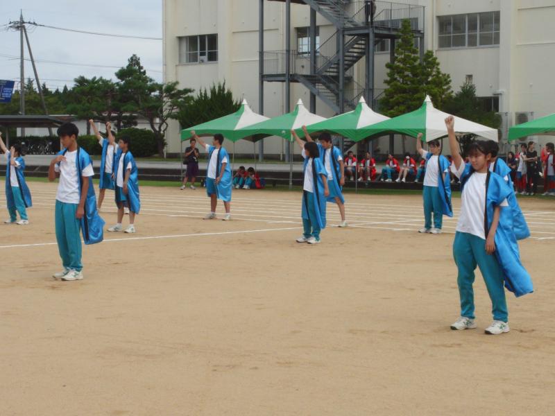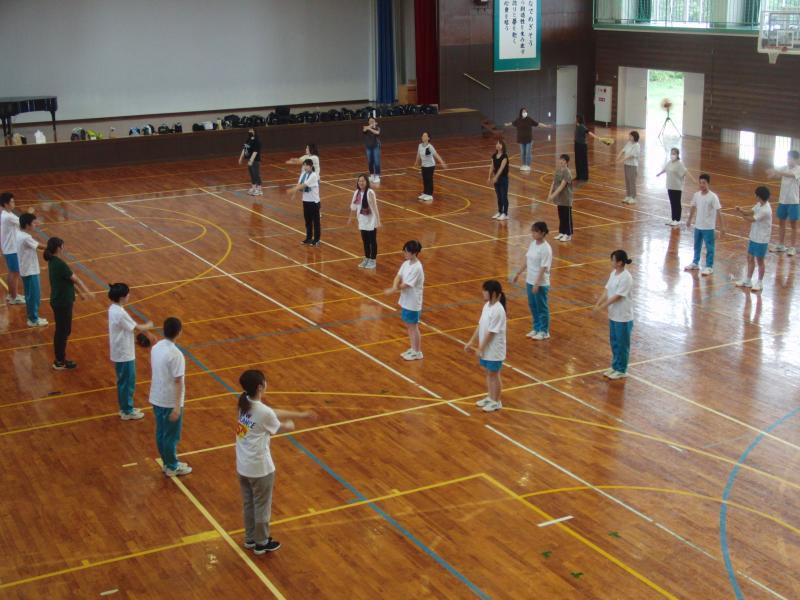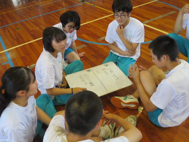 体育祭のメインイベント「南中ソーラン」の中間発表をしました。赤団、青団それぞれが出来具合を披露し、お互いのよさや自分たちに不足しているところなど話し合いました。ただ、手の内はお互い見せていないようです。