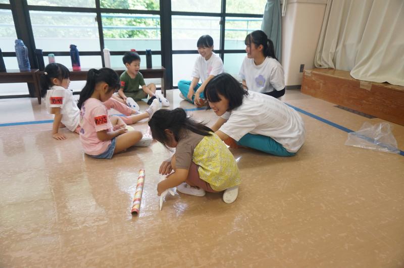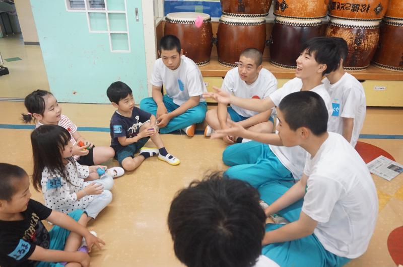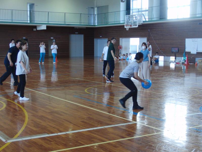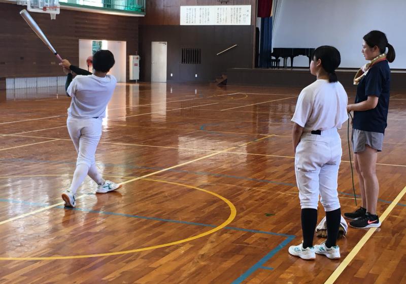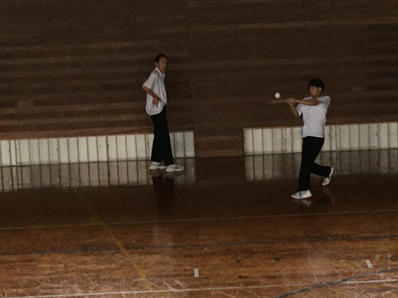 給食後は、教室でのおしゃべりや体育館での運動です。今日はやわらかいゴムボールでバッティングを楽しむグループも現れました。