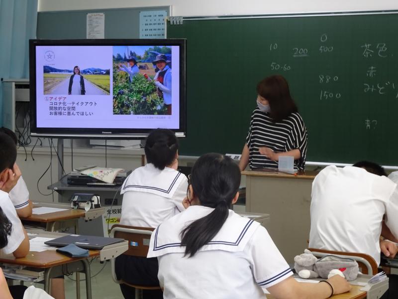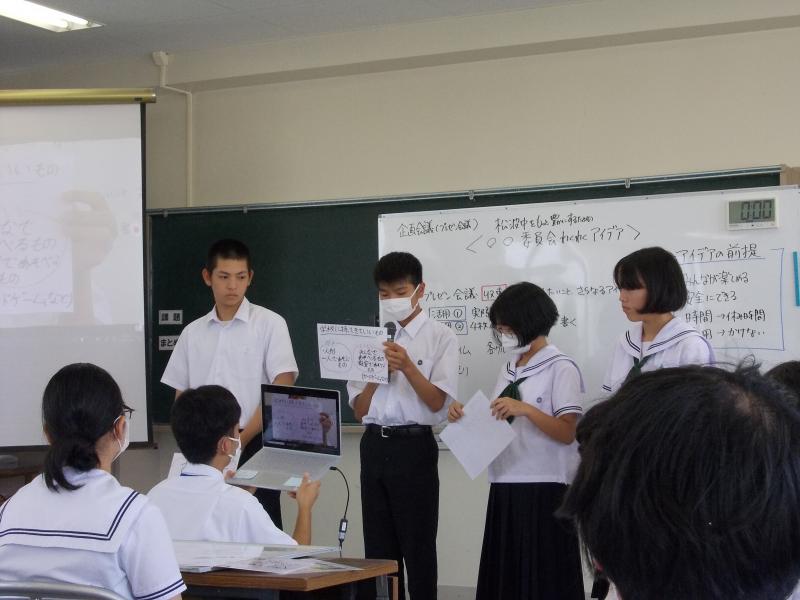 プレゼンでは、楽しそうなアイデアがたくさん出ていました。「季節ごとに花を植える」「読書と音楽のリクエスト」「熱中症対策の水遊び」など実現できることを期待したいです。横山先生からも、「さすが中学生!プレゼンやり遂げる力が十分ありますね。」とお褒めの言葉をいただきました。