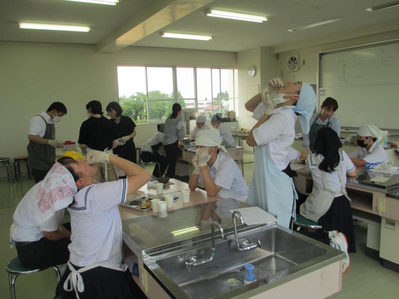 ※「はさみ菊」はその後24分割されて、1・2年生のおなかの中に納まりました。なお、本日つくった和菓子は冷蔵庫に入れて保管し、部活動後に持って帰ります。本日中にお召し上がりいただきますようお願いいたします。
