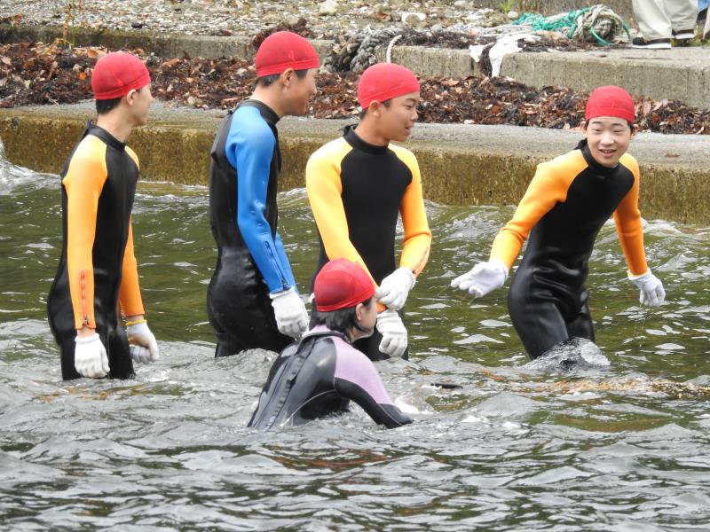 水槽が狭いせいか共食いするヒラメもいましたが、わずか2週間ほどで5cmほどだったものが10cmを越える大きさになりました。生徒は、ヒラメの成長に驚くとともに、愛着を持ちました。更に大きくなることを願って、空林の海岸で放流しました。