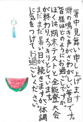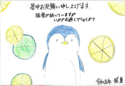 暑中見舞いはがきは、第二長寿園へお届け予定です。今年度は、代表生徒が訪問して、直接お渡しします。