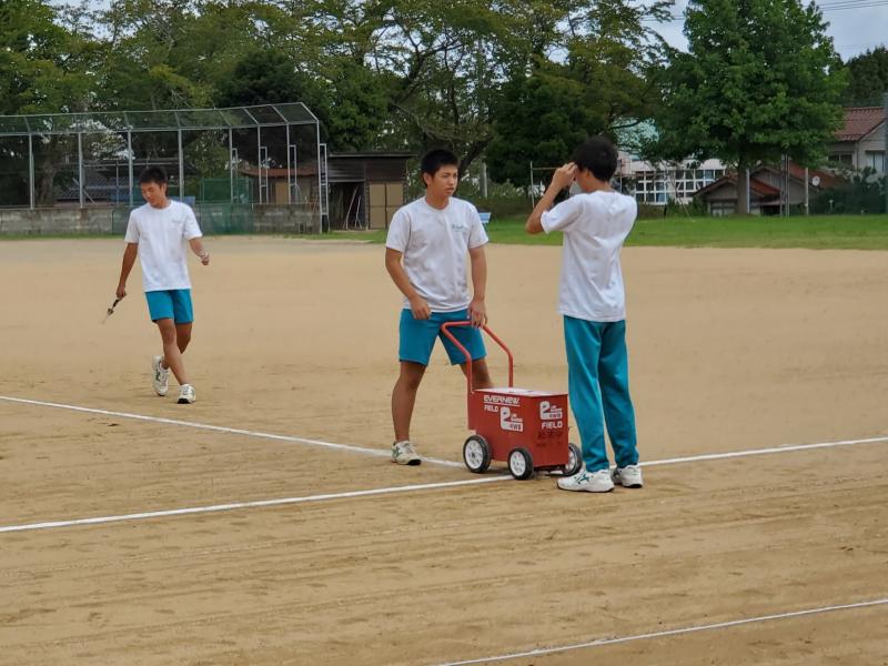 昼休みには、3年生を中心とした数名のボランティアが、グラウンドにラインを描いていました。