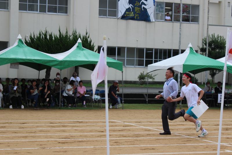 今年度は全種目に全生徒が出場する(昨年度までは一部選手制)ため、肩で息しながらのアナウンスや準備など大忙しでした。学年を問わず体育祭を精一杯楽しもう・盛り上げようとする姿が印象的でした。