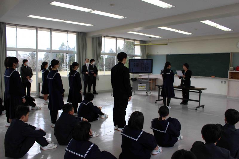 海洋教育の一環で、毎年大学教授をお招きし、海に関するお話を聞いています。今年は、2年生が柳田中学校と合同で、東京大学の原田尚美教授から、「南極と北極」「第66次南極観測隊の経験から」と題して、科学的なデータや観測隊として南極に行かれた経験を交えて、たくさんの貴重なお話を聞くことができました。最後に先生から「今、自分がいる場所が全てではなく、地球規模で考え行動してみよう」と、メッセージをいただきました。また、生徒からのたくさんの質問にも丁寧に答えていただき、ありがとうございました。