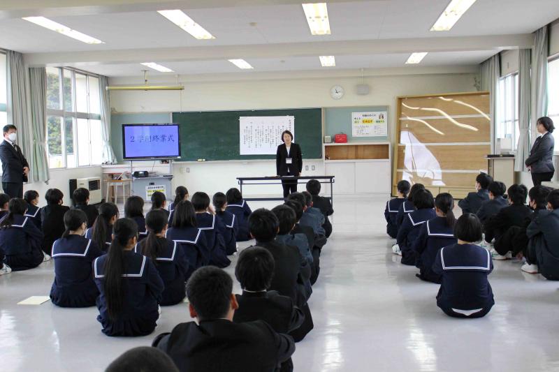 2学期最終日。今日は、全校で大掃除や表彰式、終業式を行いました。また、学級では身の回りの整理整頓をした後、冬休みの過ごし方について、生活面や学習面の目標を考え実践するための計画を立て、2週間の冬休みが有意義な時間として過ごせるよう確認しました。下校時、生徒から「良いお年を!」と声を掛けられたのですが、明日からの冬休みへの期待感にあふれ元気いっぱいの声でした。元気に楽しく、そしてしっかりとこれまでの学習を定着するための冬休みとして過ごしてほしいと思います。皆様、良いお年をお迎えください