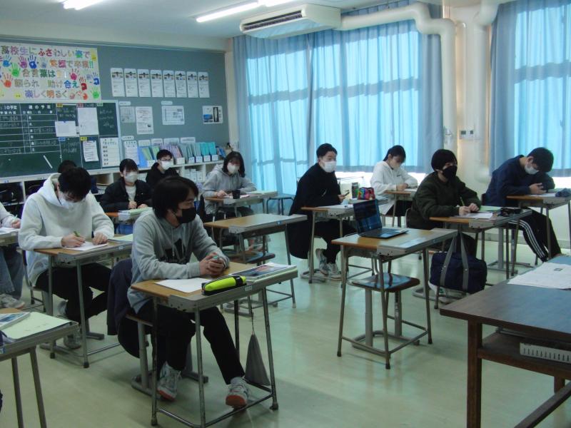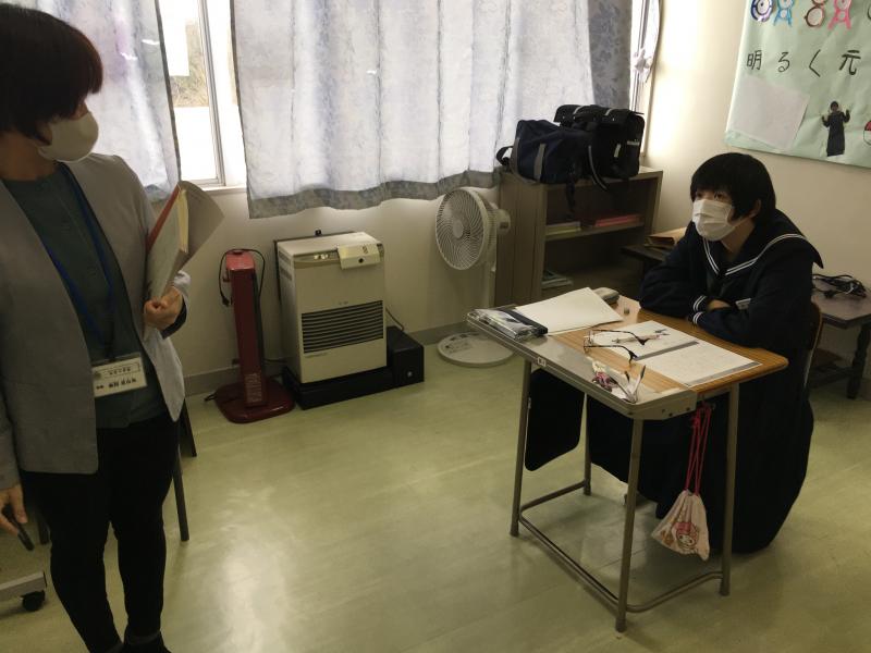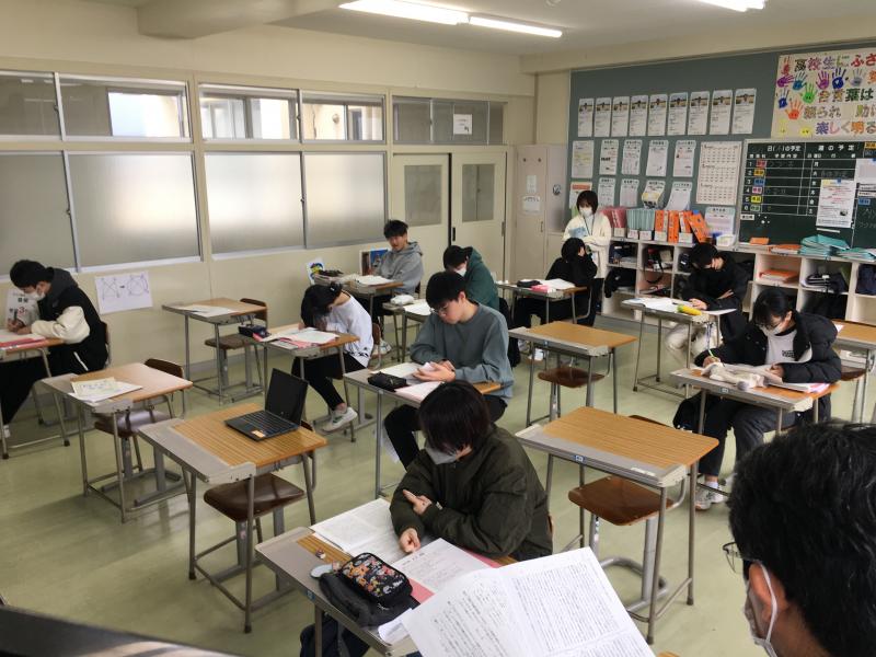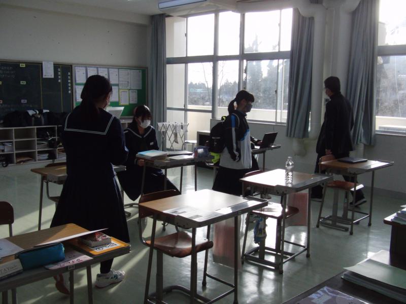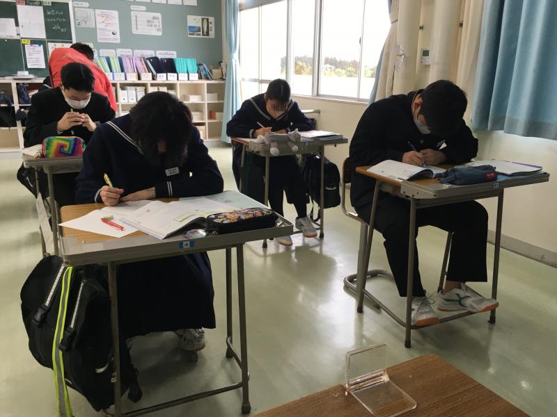 今日・明日と3年生は学力テストに挑戦しています。公立高校入試まで5週間あまり(37日間、私立入試は今週木曜)。本番に近い難易度の学力テストに真剣に向かい合っていました。遠方に避難している生徒にもこの土日でテストが届き、オンラインでつながって3年生全員が一緒にテストを受けました。また、オンラインで面接練習をしていました。