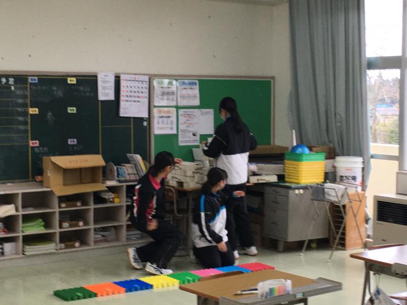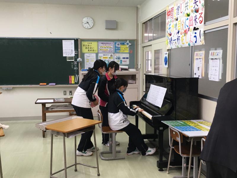 音楽室(入浴支援の自衛隊が駐留)からピアノを2年教室に運びました(自衛隊員の皆さんも協力していただきました。ありがとうございます)。卒業式に歌う歌の伴奏練習や歌声が聞こえます。また、本日は支援の先生による美術の授業でした。作業に入ってあまりに集中したため、5限目から6限目まで延長して時間一杯指導していただきました。