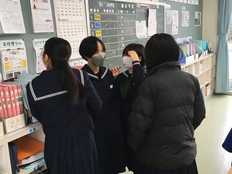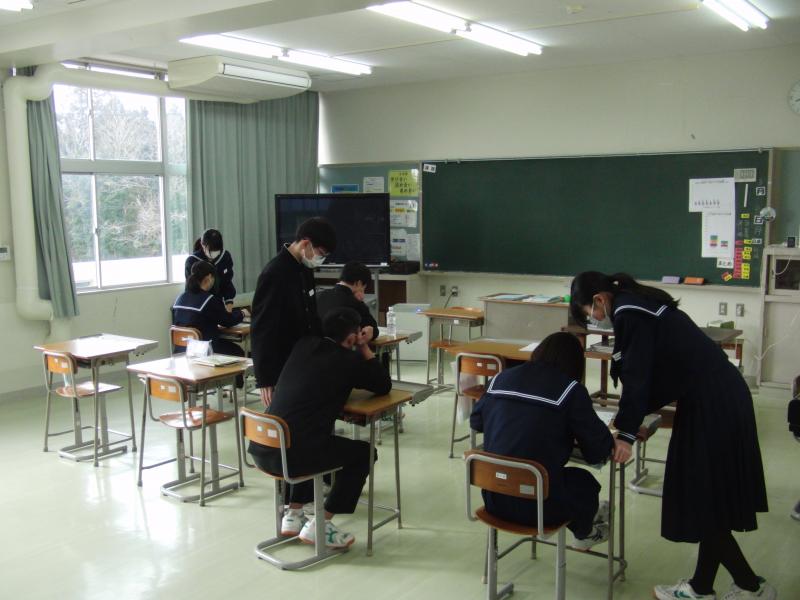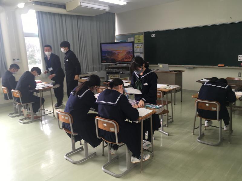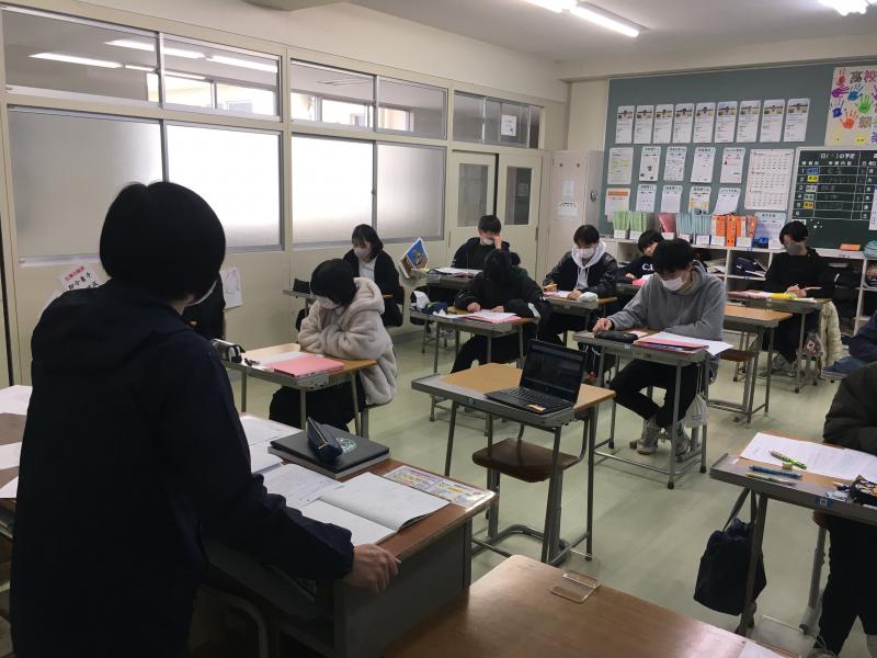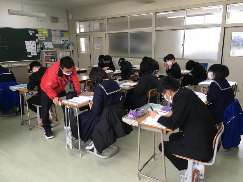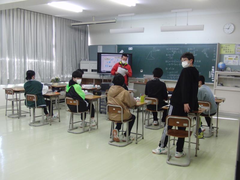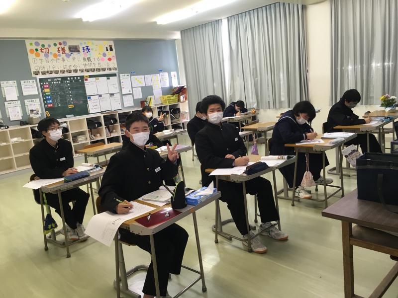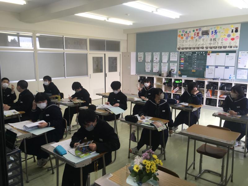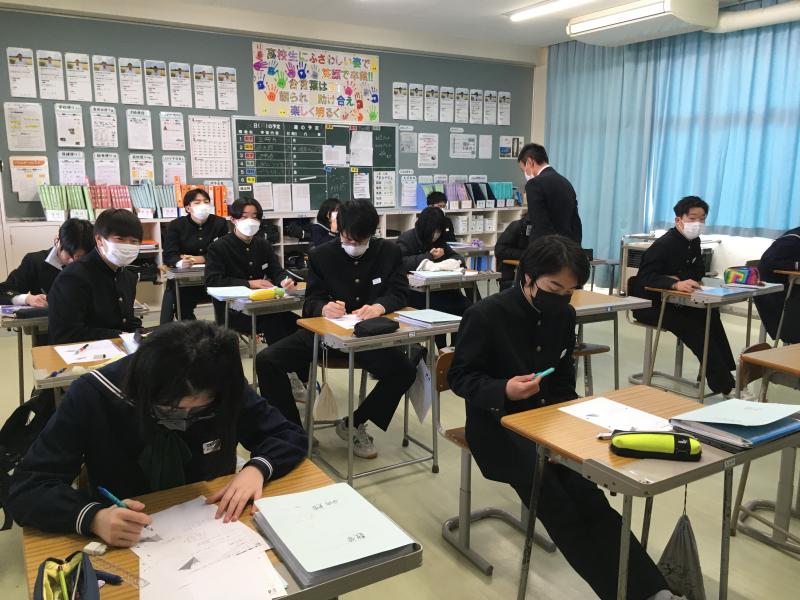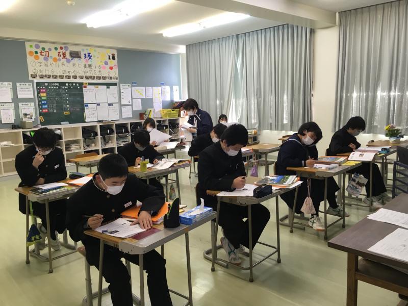 落ち着いて学習に臨んでいる生徒が多いようです。3年生は高校入試、1・2年生は3学期末テストを控え、今年1年間の勉強の集大成に取り組む授業が多かったです。