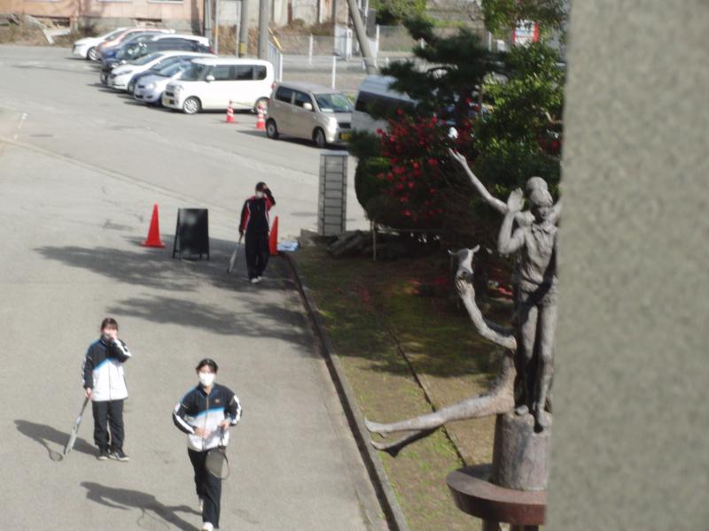 外で生徒たちが活動する姿を見ることができました。短い時間でしたが、受験勉強の合間に体ほぐしをする3年生。体育の時間に、キャッチボールや乱打など基本的な動きを習う2年生。