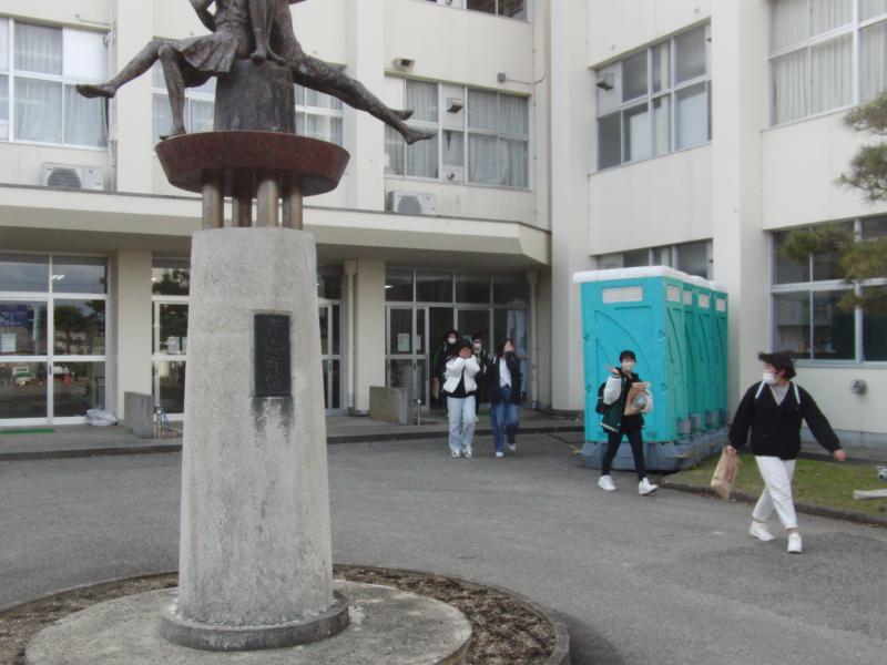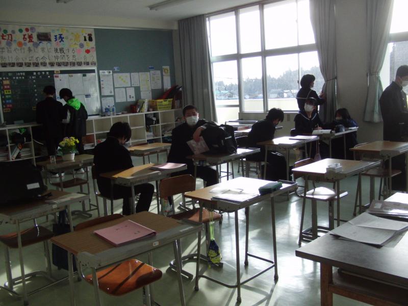 金沢市へ一時的避難をしていた生徒たちが先週末で避難解除となり、今日から松波中学校へ登校してきました。また、今週より制服登校となり、以前のような学校の雰囲気が戻ってきました。お互いに無事・健康を喜び合い、一緒に授業に参加する姿がありました。ちょうど今は昼休みで、2階2年教室から卒業式の式歌「旅立ちの日に」のピアノ伴奏(練習)が校舎内に響いています。