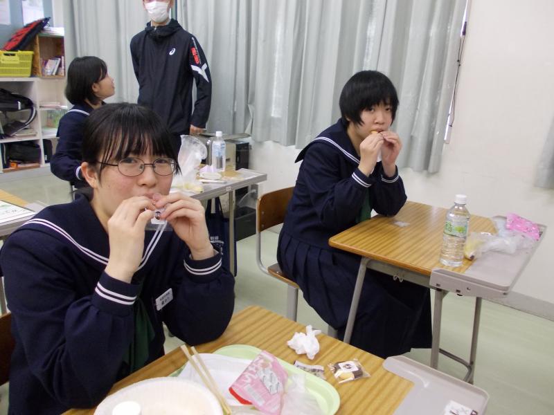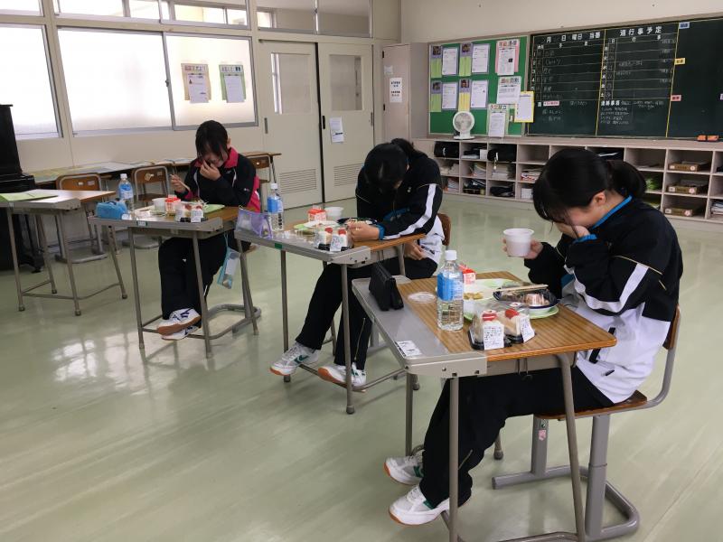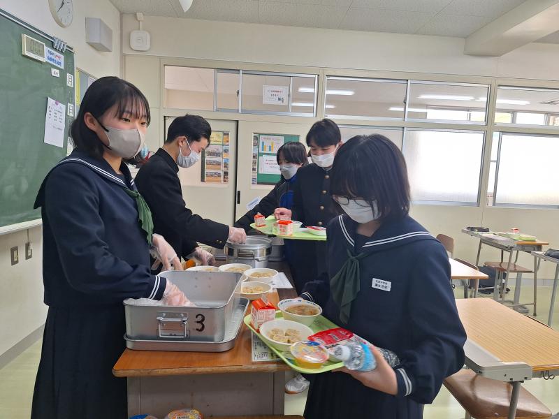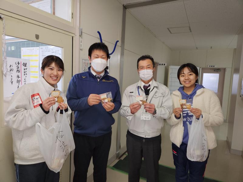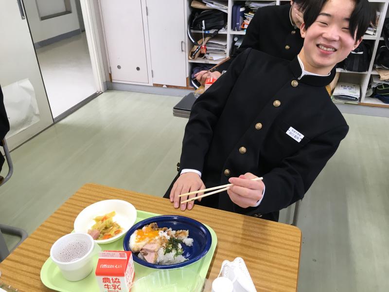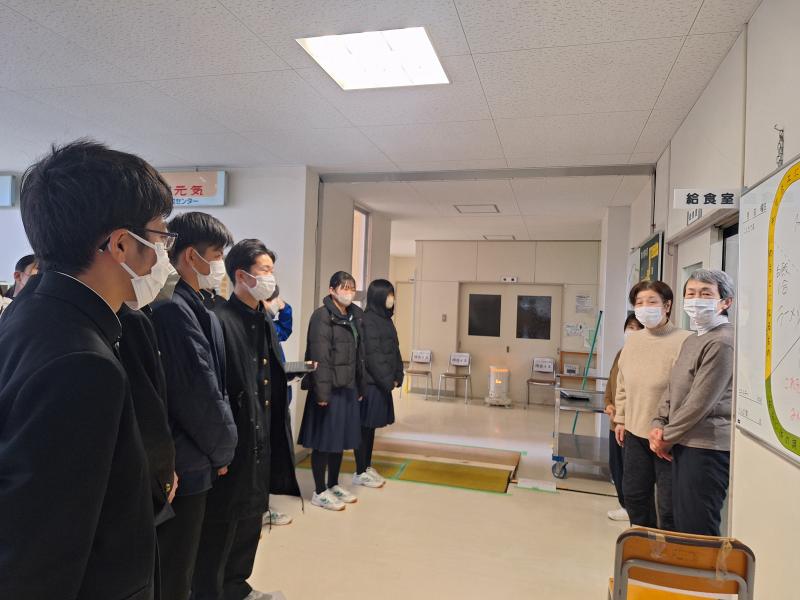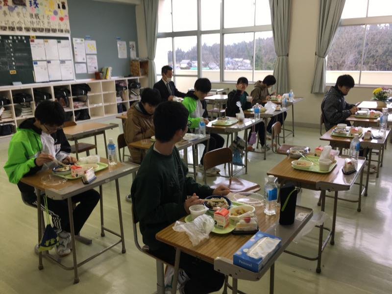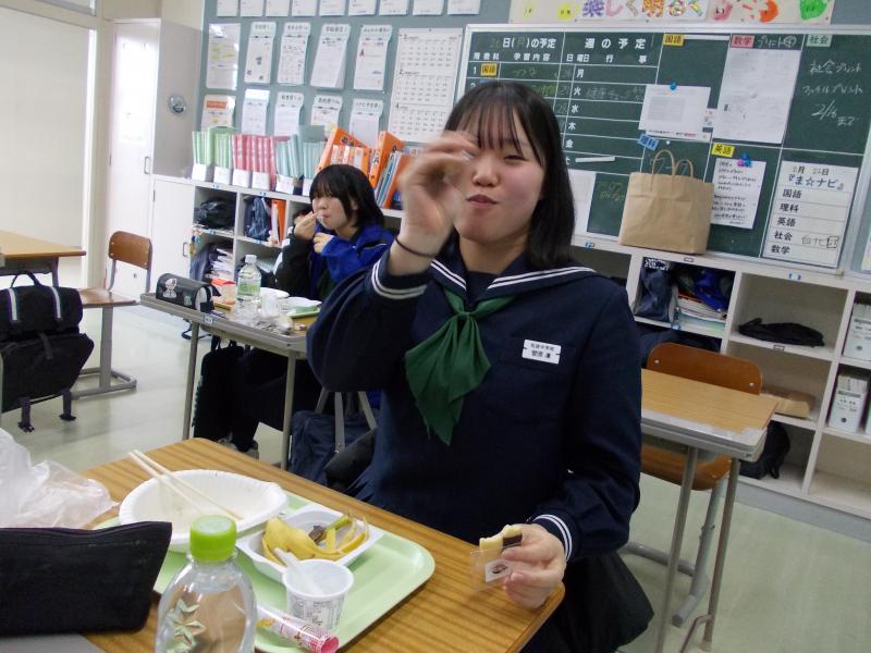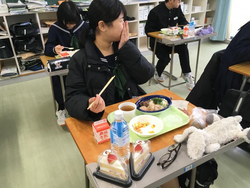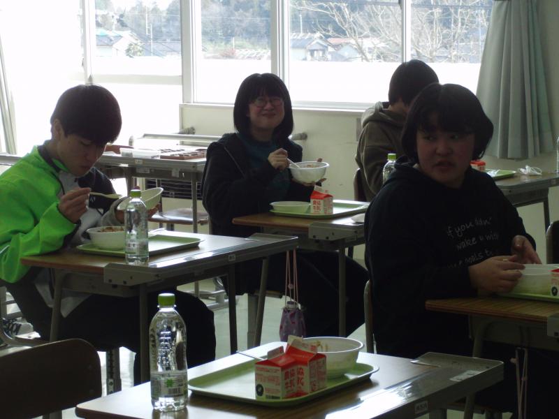 給食後には3年生全員そろって調理員さんに感謝を伝える挨拶にきてくれました。調理員の皆さんからも、「つらい状況を過ごした3年生のみんなは強く生きられるよ!入試も頑張ってね!」と温かいエールをいただきました。