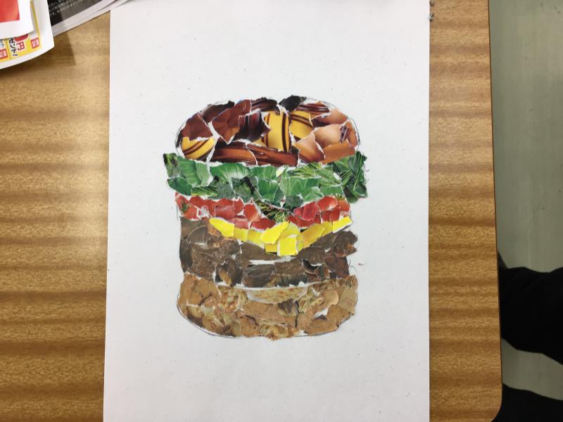 3年生美術のちぎり絵の作品です。(作者名アップしました。2/26)