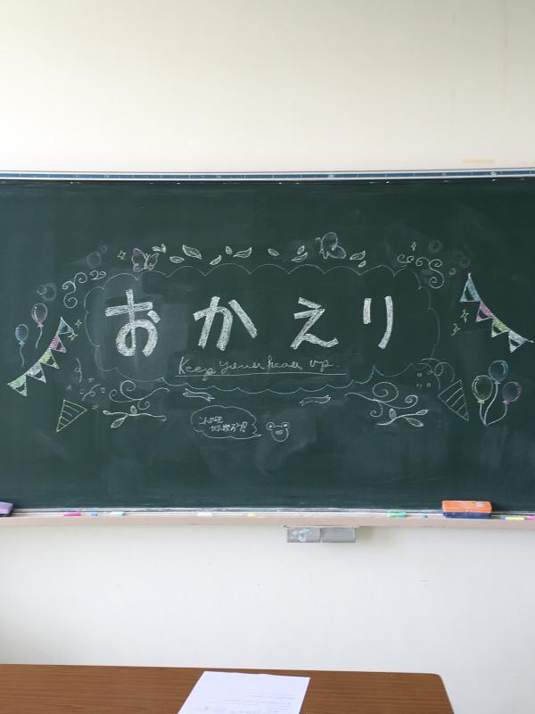 遠方へ避難していた友達が帰ってきます。2年教室の黒板には・・。