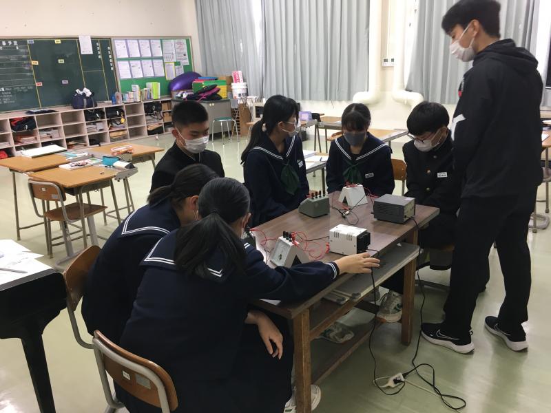本日は、県内の多くの私立高等学校の入学試験があります。松波中からも数名が受験し、全員会場到着の連絡がありました。3年教室はいつもより静かに感じました。1年生は音の性質をオシロスコープで実験・確認をしていました。