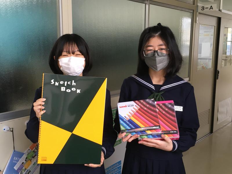 校長賞 久保田光咲さん(1年)、美術科賞 櫻井ひよりさん(1年)
