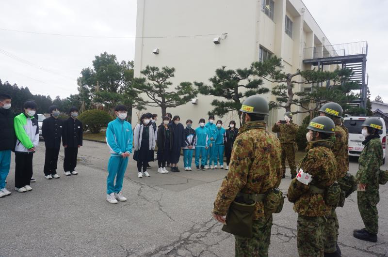早朝から玄関前を除雪してくれた自衛隊員が作ったのでしょうか。雪だるまが登校する生徒を迎えてくれました。