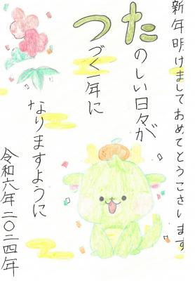 元旦に最優秀賞をこのホームページで紹介し、その後は作品を紹介する機会がないまま3月となりました。せっかくの生徒作品であり、お体を気遣うメッセージも多いので紹介させていただきます。復興にむけた10カ月、令和6年となりますように。