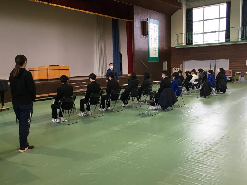 体育館の準備もおおむね整い、6限目に3年生が卒業式の所作の練習をしました。今週は高校入試もあり、短い期間で卒業式を迎えることとなります。それゆえか、3年生からは真剣さが伝わってきました。「本番に強い」ところをぜひ見せてほしい1週間です!