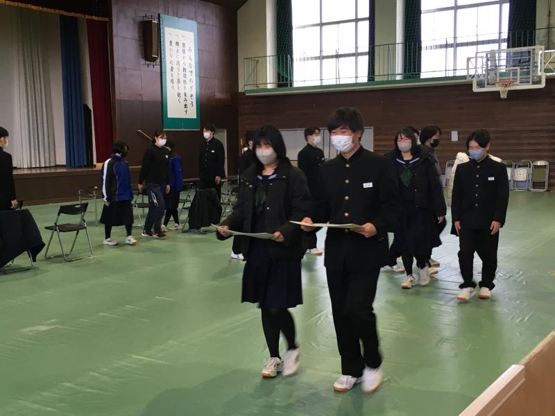 呼名のあと起立するのですが、入賞の生徒たちの返事や態度は自信にあふれているように感じます。