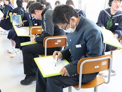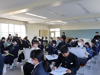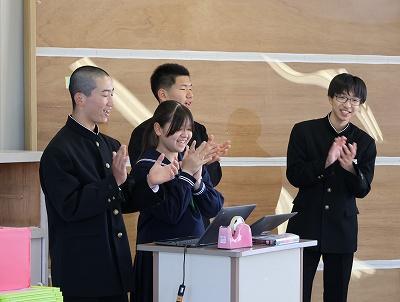 また、明後日には奥能登大会の激励会を生徒会が主催し行います。昼休みに全校生徒で練習をしました。1年生は校歌や応援歌を習いたてなので、終礼時に3年生が一緒に練習してくれました。先輩と一緒に歌って緊張しているようでしたが、声はとても大きくなっていました。