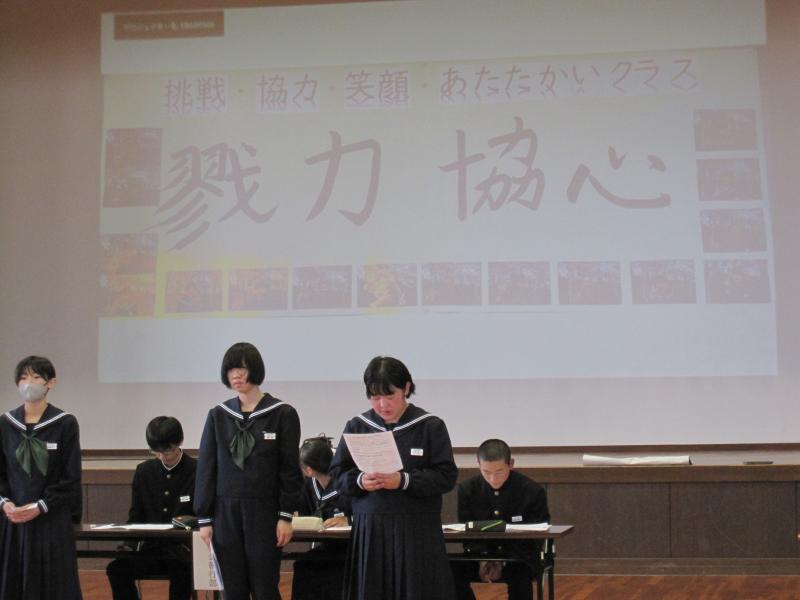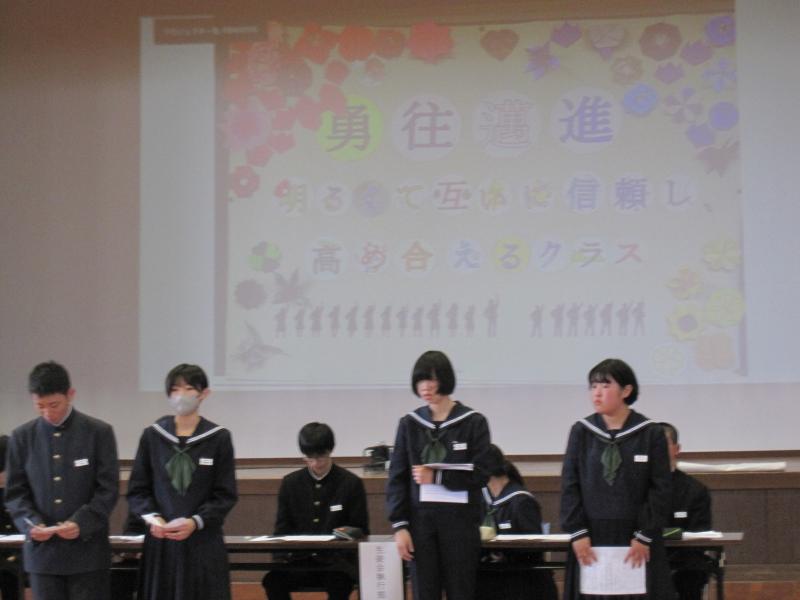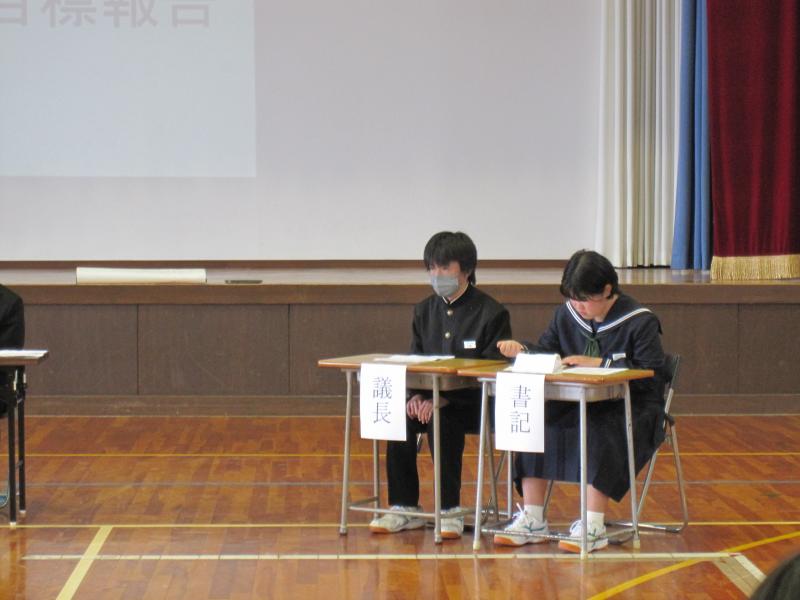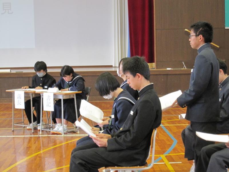 今年度の生徒会活動について、全校での生徒総会を行いました。生徒会や各委員会から活動計画が提案され、それについて事前に学級討議を行い、本日質問や意見がたくさん出ました。丁寧に執行部や委員長が回答し、活発な話し合いとなりました。また、生徒会スローガンや学級目標が報告され、これからの松波中学校生徒が目指す姿を確認しました。