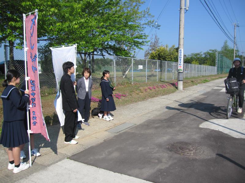 GW明けですが、登校時の元気な挨拶が響いています。今朝は、保健給食委員会のメンバーが挨拶運動を実施しました。とても良い天気で、挨拶の声も一段と大きく聞こえていました。学校前の交差点では、小学生も一緒に通って行きます。松波っ子のパワーを感じた時間でした。