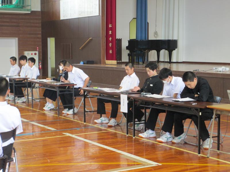 松波中学校は定期テストという形をとっています。期末テストに向けて、本日の話と中間テストの反省を今月の学習に活かしていってほしいです。