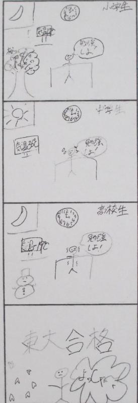 本日も1年生作の4コマ故事成語です。また,3年生の卒業制作も受験勉強の傍らで少しずつ進んでいます。