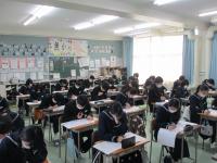 明日から,公立高等学校入学者選抜学力検査(公立高校入試)が始まります。3年生は今日の学活で,校長先生の激励のあと,担任の先生から最終の確認を受けました。