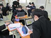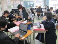 本日の校内の様子は、1年生国語の授業です。グループディスカッションにむけた班ごとの準備でした。それぞれ「日本の良さ」「現代のよさ」「地域のよさ」「クラスのよさ」というテーマに向けて自分たちの論理を構築していました。さて、どんなディスカッションになるのでしょうか。