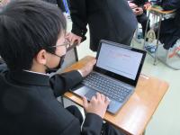 3年生は各教科で最後の授業を迎えています。今日は技術の最終日。松波公民館の瀧田館長さんを講師に,プログラミング学習に取り組みました。