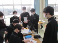 給食で能登町や県内の地産地消を進めることは,安全安心な給食につながったり,価格の安定につながったりすることを学びました。その後,価格だけでなく作業工程や作業時間を考えて冷凍野菜などを使ってみるなど,生徒たちが将来自立するときにも役に立つと思う学習内容でした。