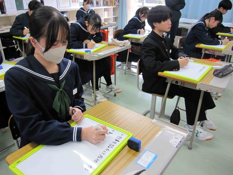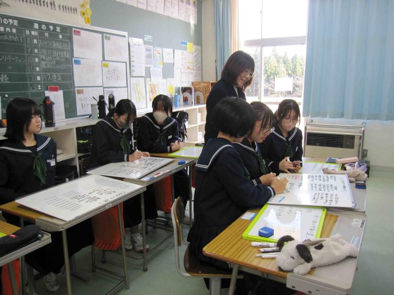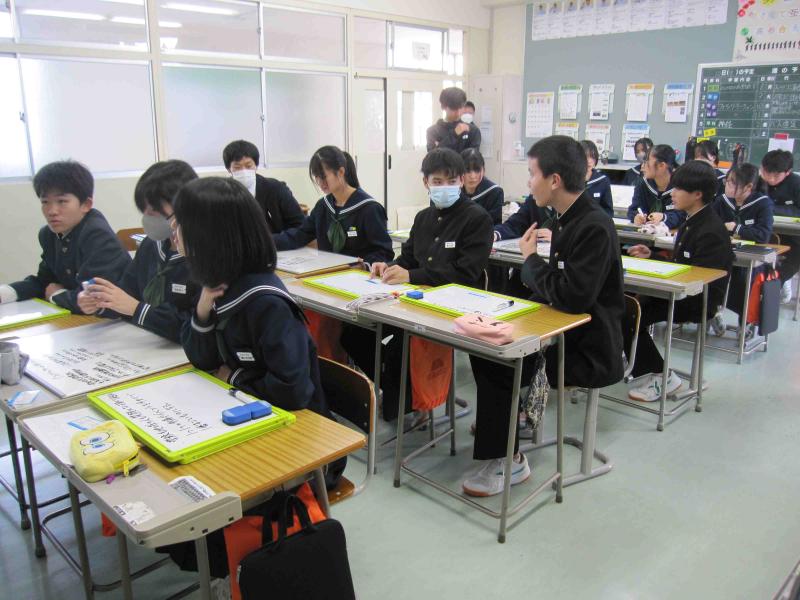 10月に引き続き、ホワイトボードミーティング® の横山先生を講師にお招きし、ファシリテーション研修を実施しました。今日は、2年生が「ファイナルイヤーの3年生としてやっていきたいこと」について考え、話し合いました。横山先生から声掛けや励ましの言葉をもらいながら、聞き手は質問に沿ってファシリテーターとなり、考えを引き出し、話し合いを活発に進めていきました。また、職員も「学校研究」をテーマに研修会を実施し、とても充実した話し合いの時間を持つことができました。明日も全学年で研修の予定です。