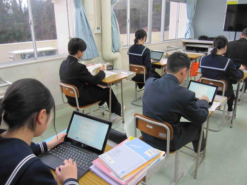 本日から3日間、1・2年生は3学期末テストを行います。1週間前にテストに向けて学習計画を立て、これまでの学習内容の定着の確認を各自がしてきました。先週末の3連休は「しっかりと勉強した。」と話す生徒もいました。これまでの勉強の成果が出るように、体調も整えて過ごしてほしいと思います。