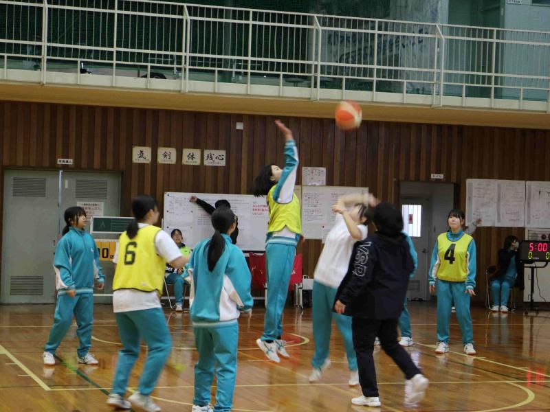 本日、延期になっていた球技大会を旧小木中体育館で行いました。前半は男女別に3チームでのリーグ戦を、後半は団対抗のそれぞれ3チームのリーグ戦です。生徒会からは、「みんなが球技大会を仲良く協力して楽しむこと!!」が目標として伝えられ、真剣にそして楽しくバスケットボールの試合をしました。「ケガをしないで」と願いつつ、白熱したプレーに拍手や声で応援しました。生徒同士も応援やあたたかい言葉を掛け合う場面もあり、全校生徒で球技大会ができて良かったと感じました。皆さん、お疲れさまでした!
